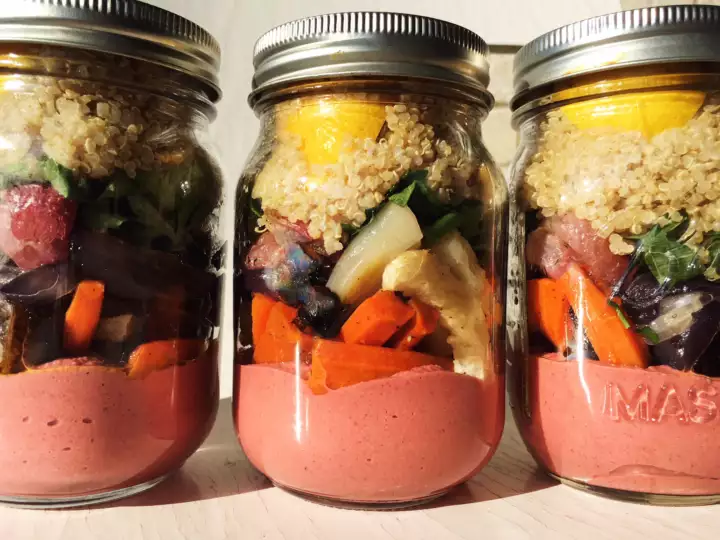 Roasted Vegetable and Beet Hummus Salad Jar