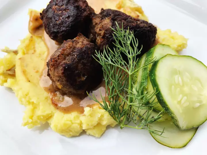 Vegetarian Swedish Meatballs with Mashed Potatoes & Gravy
